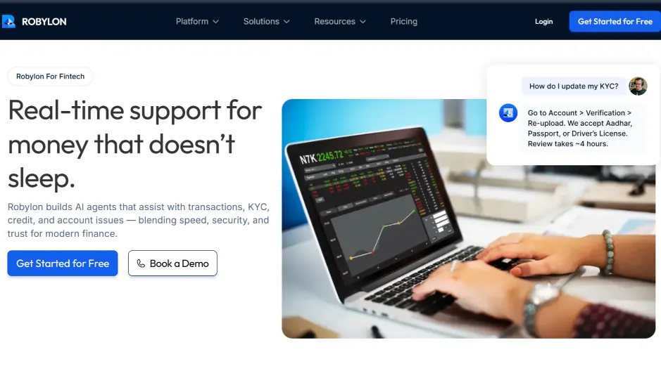 Robylon integrates directly with platforms like Salesforce, HubSpot, Twilio, and Exotel, connecting connecting voice, chat, and ticket systems under one roof.