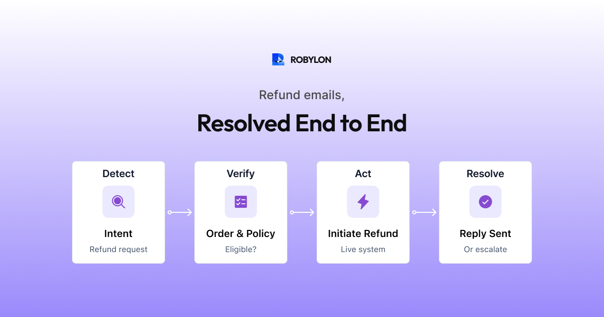 Automate refund emails with precision. Robylon AI connects to your payment system, applies your refund policy automatically, and resolves 70β85% of refund emails end-to-end. Start free at robylon.ai
