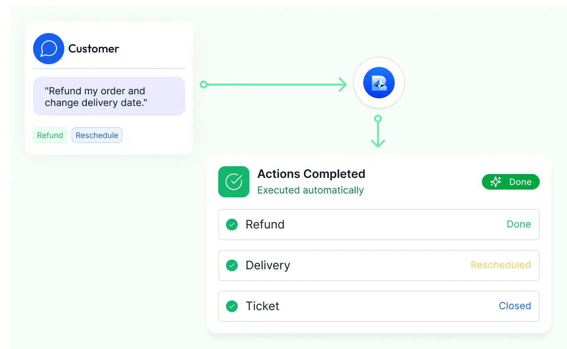 Some tickets need updates, refunds, reschedules. Robylon can trigger workflows and complete actions.
