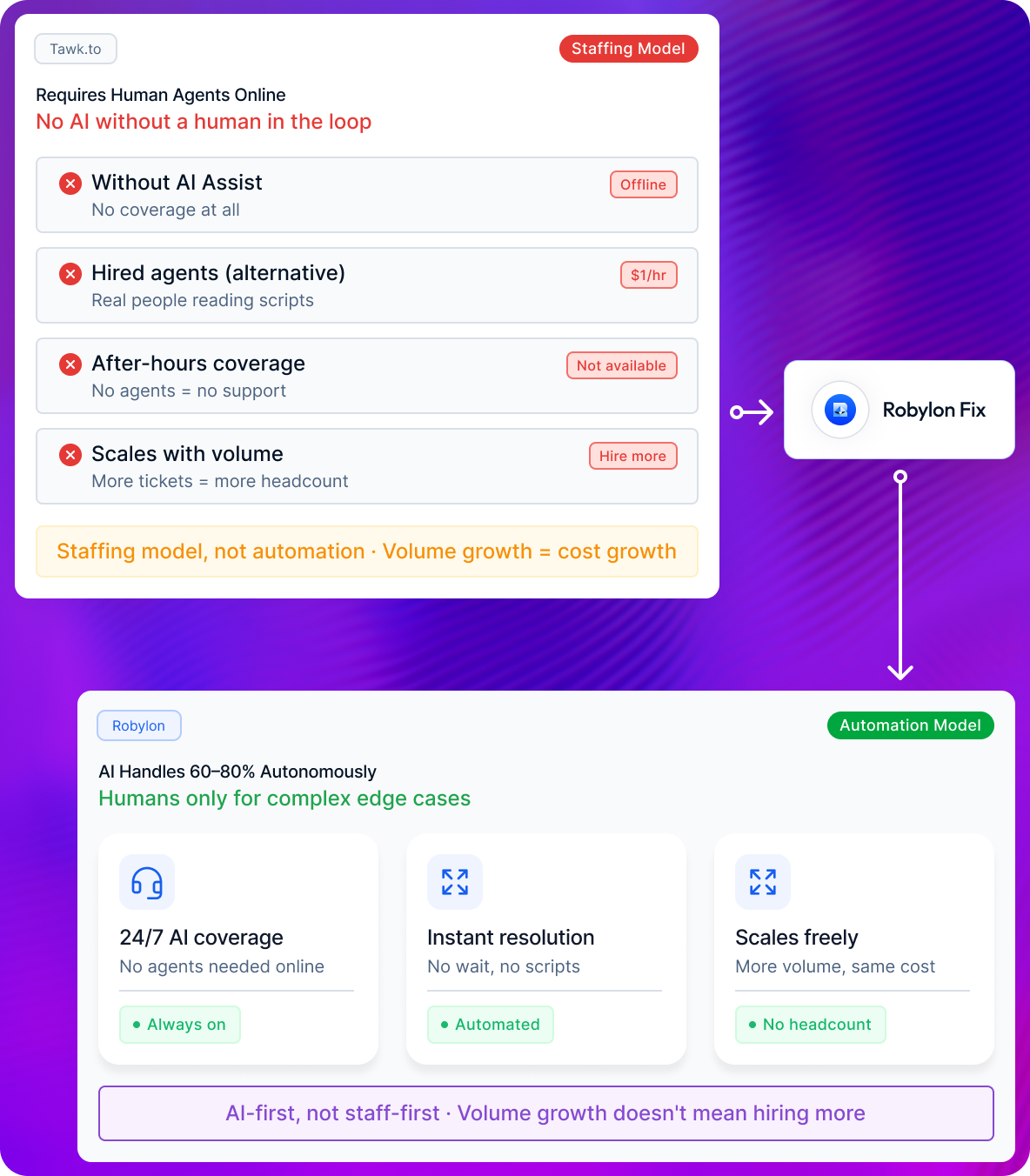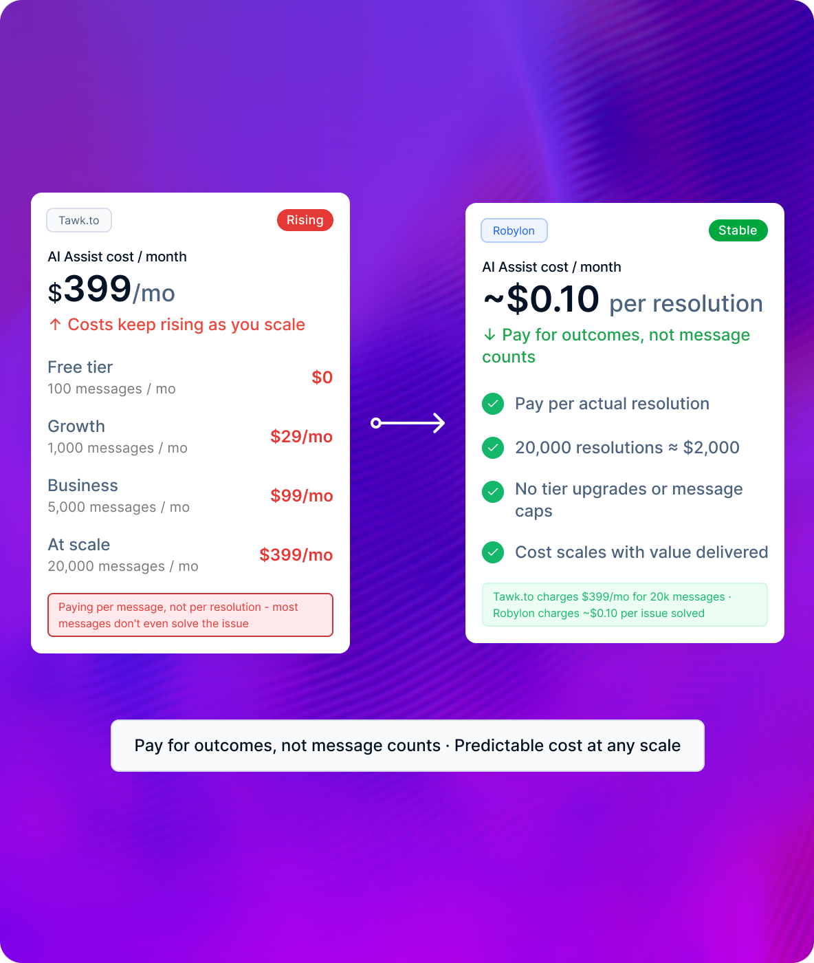 Predictable credits plan. Typically 60–70% lower than equivalent Intercom bill.