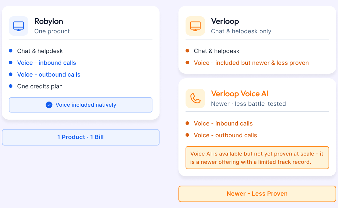 Voice AI available but newer and less proven. Primarily a chat-first platform.