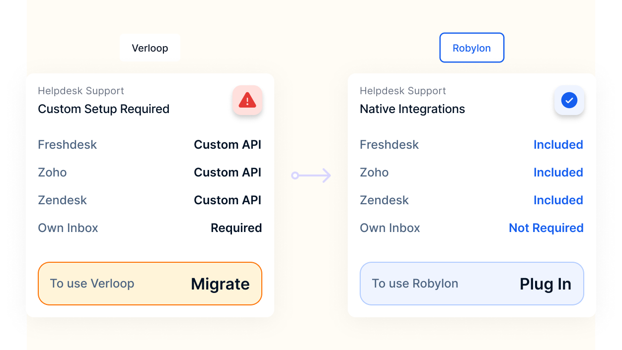 Verloop has its own inbox. Workflows built in Verloop don't port to other platforms.