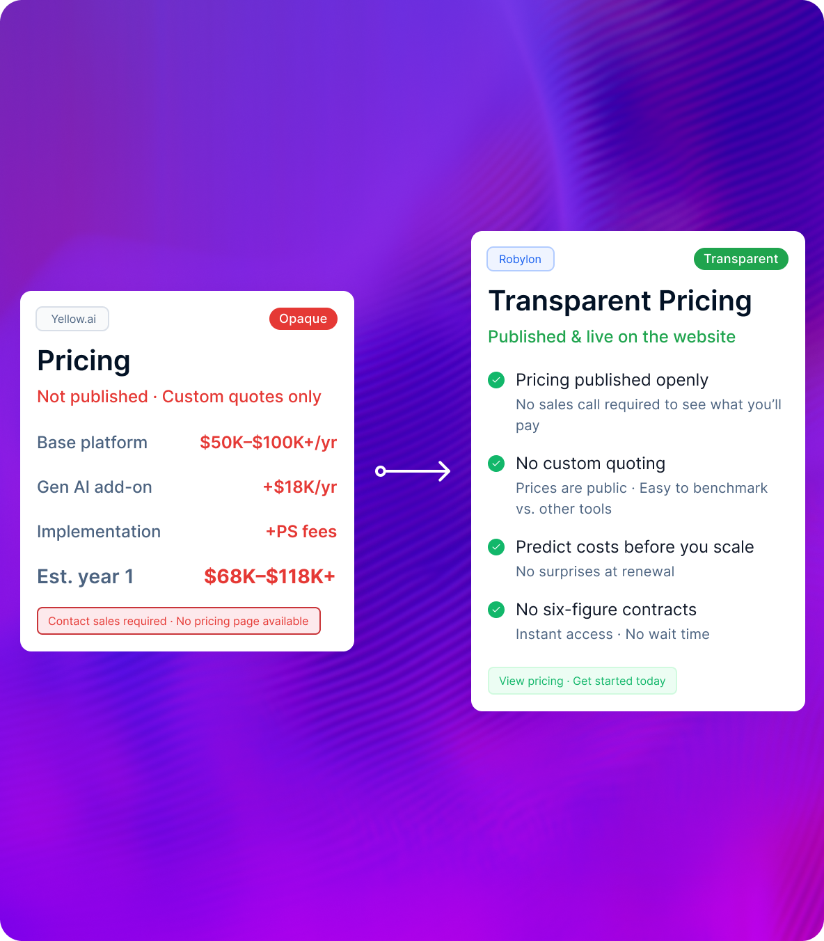 Transparent, published pricing. Available on the website. No annual minimums. Published